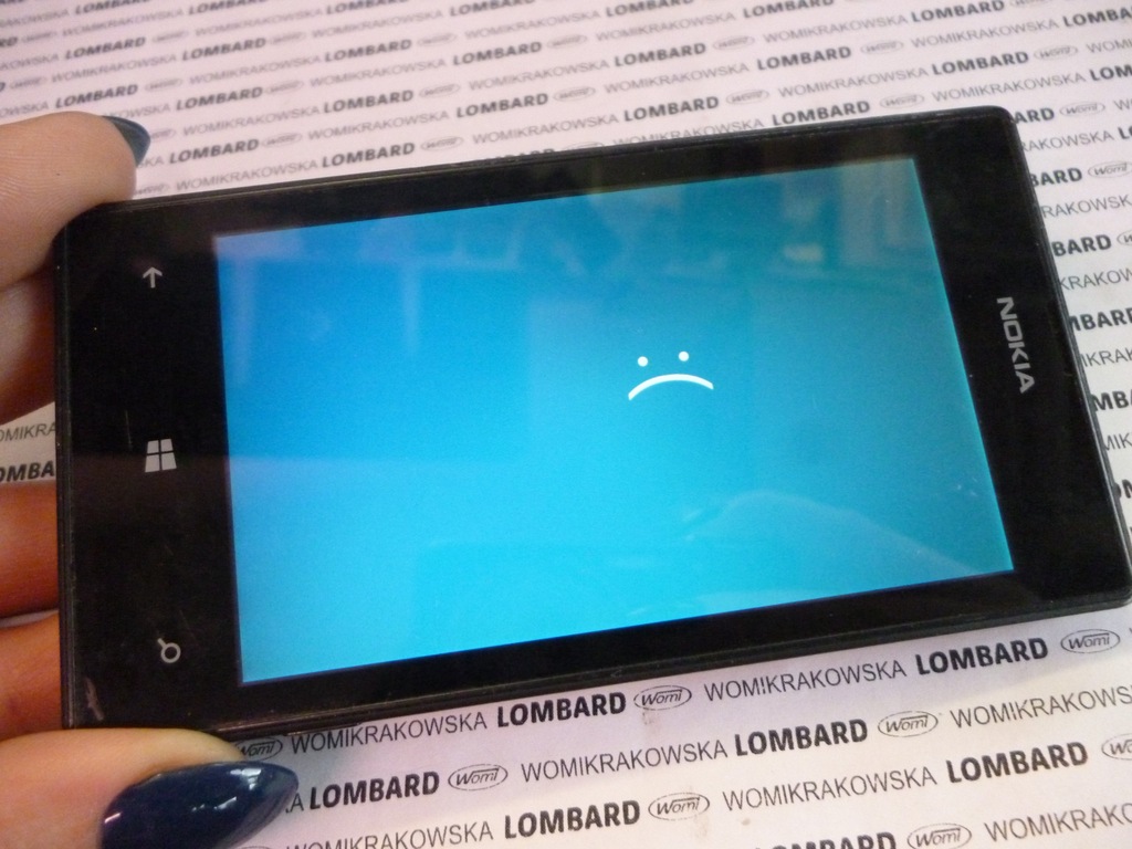 Nokia lumia 820 smutna buźka na ekranie.
